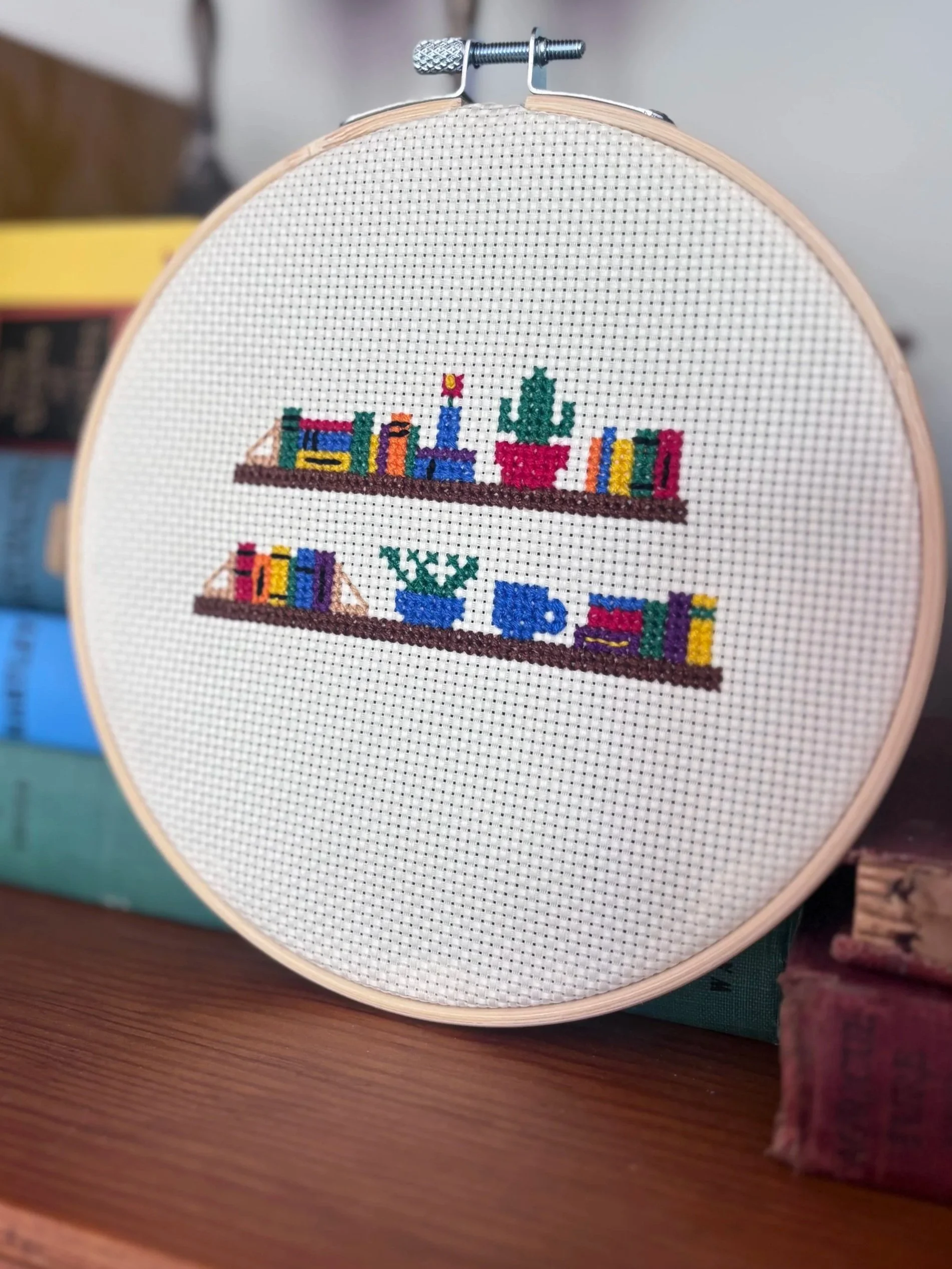 Come learn the basics of cross stitch while designing your own bookshelf! This class will be led by Weterville local, Mallory Hill. In this class you will cover the basics of cross stitch and how to design your own pattern for a bookshelf. Everyone will work on their pattern and start stitching their shelves, you will have the opportunity to finish the piece at home or come back to Birdie's cafe to work on it.