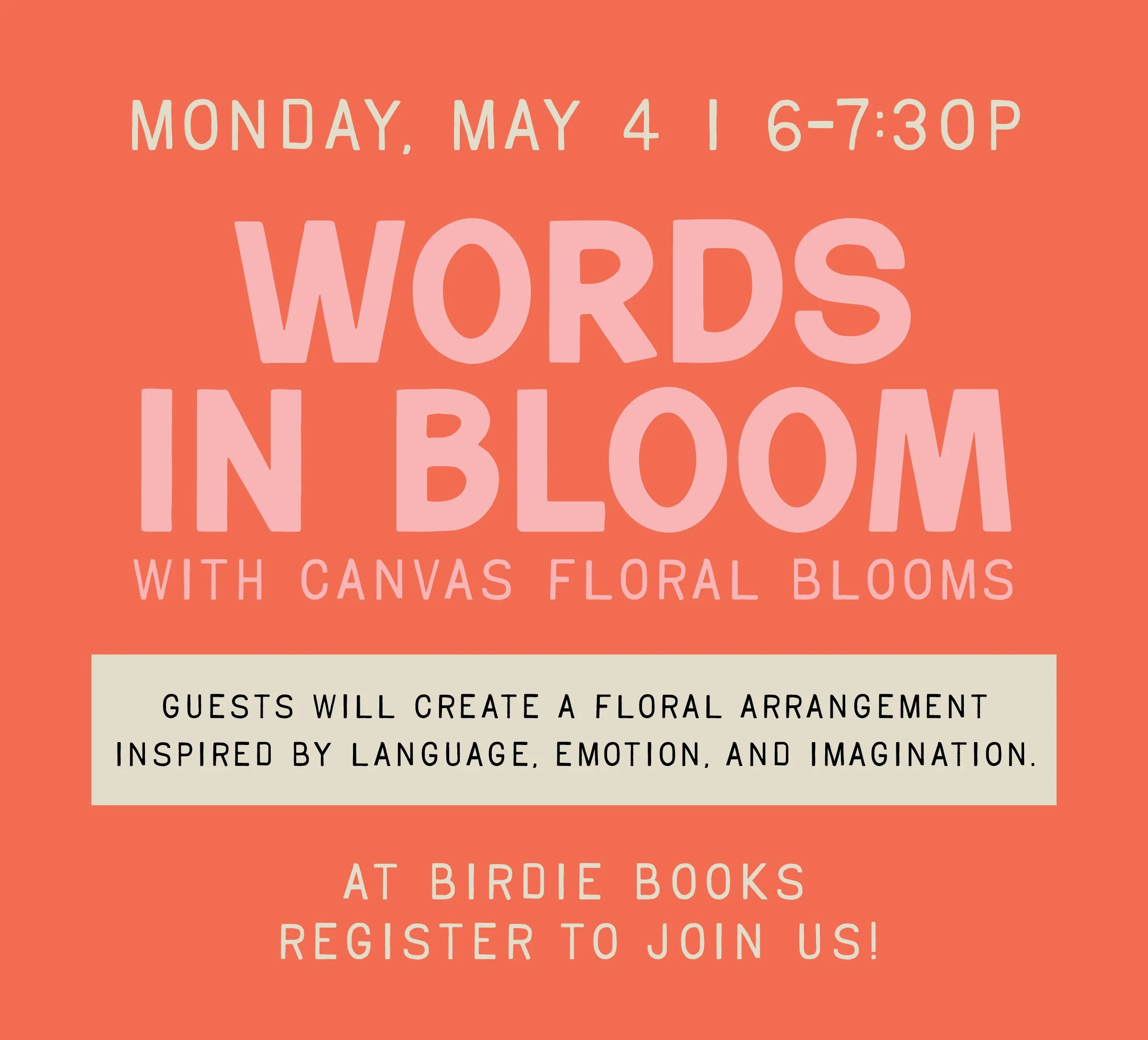 Join Birdie Books in collaboration with Canvas Blooms Floral Studio for an evening where flowers and storytelling intertwine.